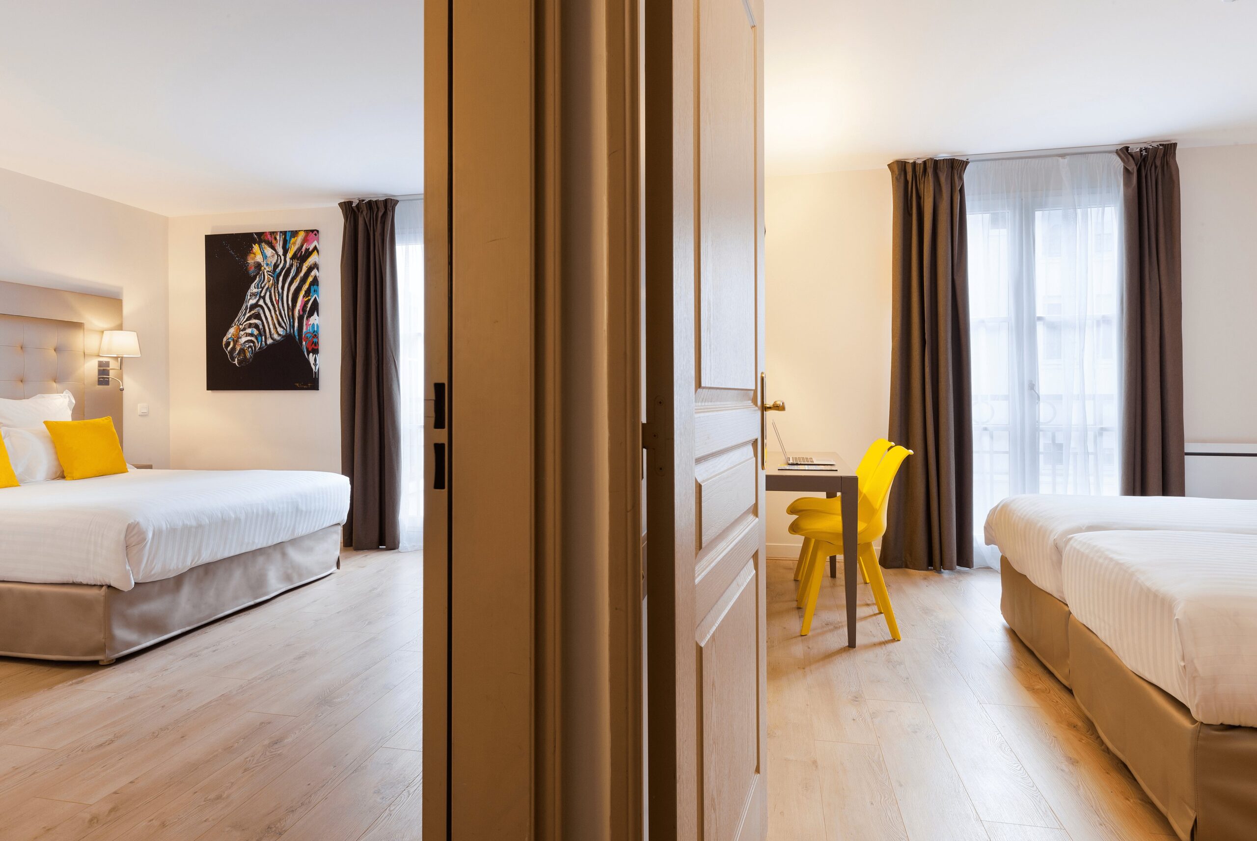 Appart’hôtel haut de gamme avec une décoration chic et contemporaine, l’Hôtel du Château vous invite à la détente dans ses grandes chambres calmes et lumineuses, équipées d’une literie haut de gamme, avec un bon thé, café ou infusion (bouilloire et cafetière Nespresso en chambre).